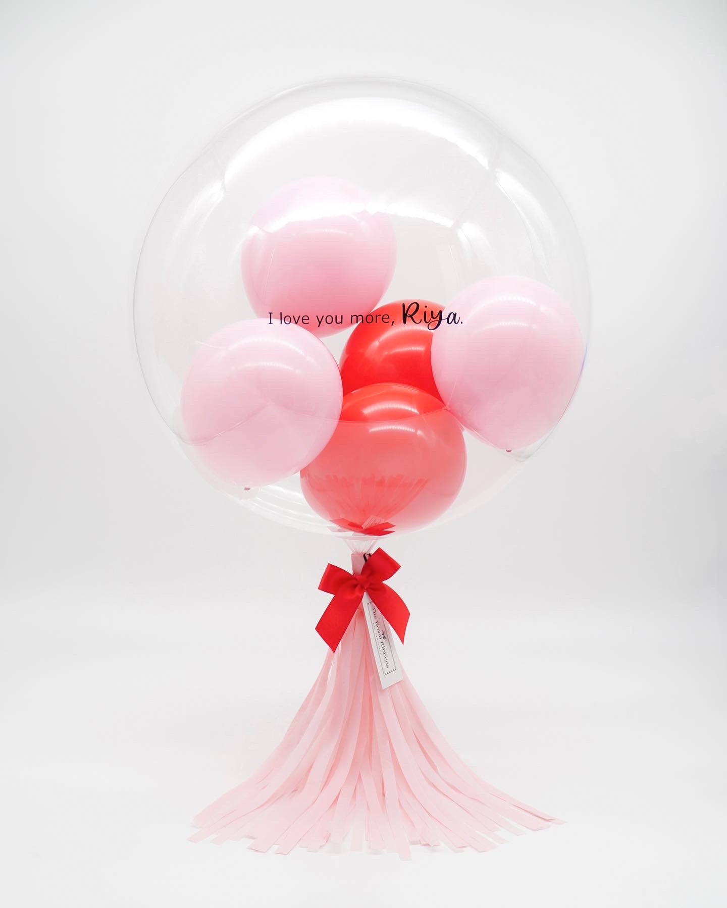 The Royal Balloon Classic features a large sized air-filled clear latex balloon with 6 mini balloons in it. With a heartwarming personalized message on the balloon, the Royal Balloon Classic makes the perfect gift or decor for occasions such as birthday, anniversary, baby shower, wedding, housewarming, and graduation.