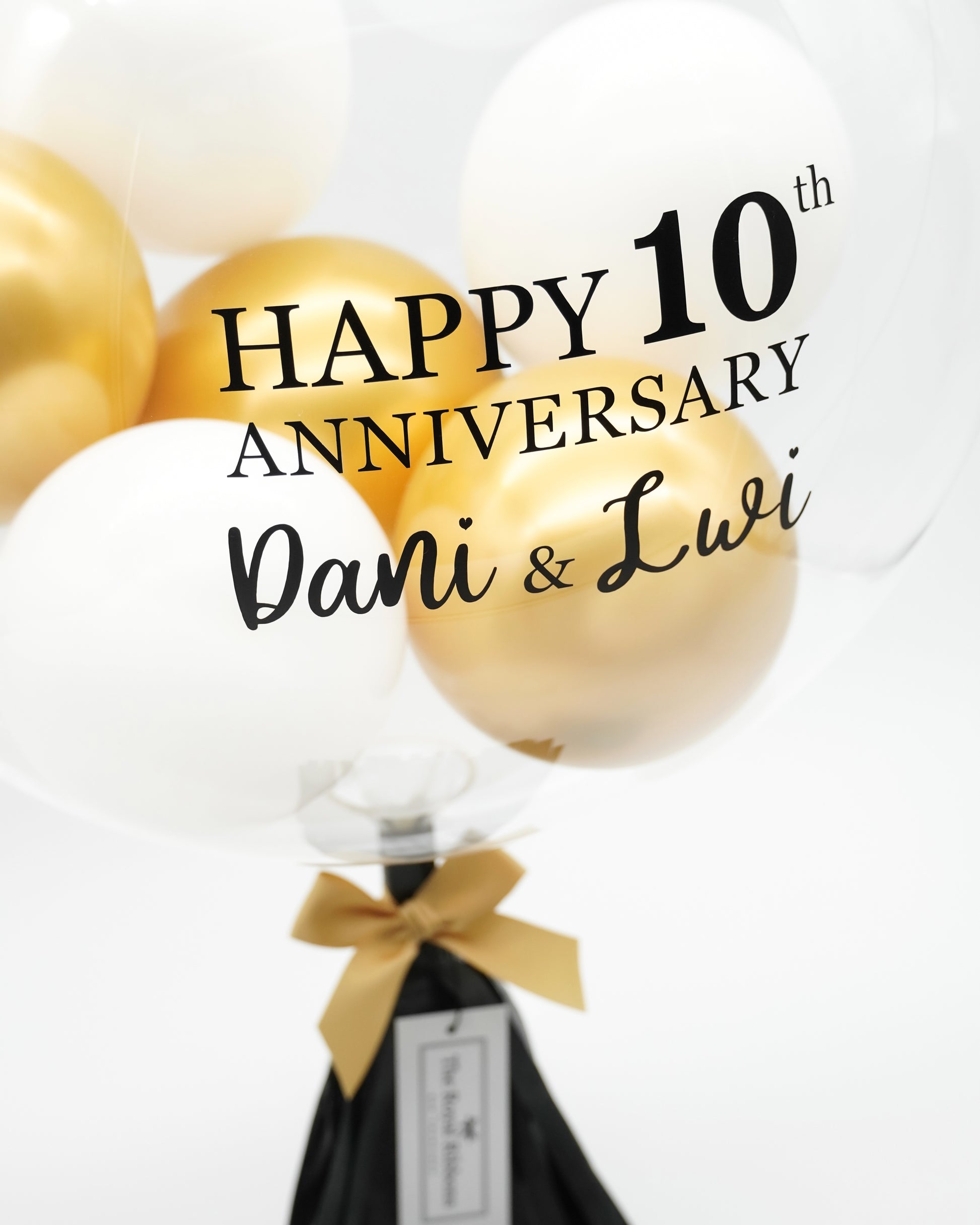 The Royal Balloon Classic features a large sized air-filled clear latex balloon with 6 mini balloons in it. With a heartwarming personalized message on the balloon, the Royal Balloon Classic makes the perfect gift or decor for occasions such as birthday, anniversary, baby shower, wedding, housewarming, and graduation.