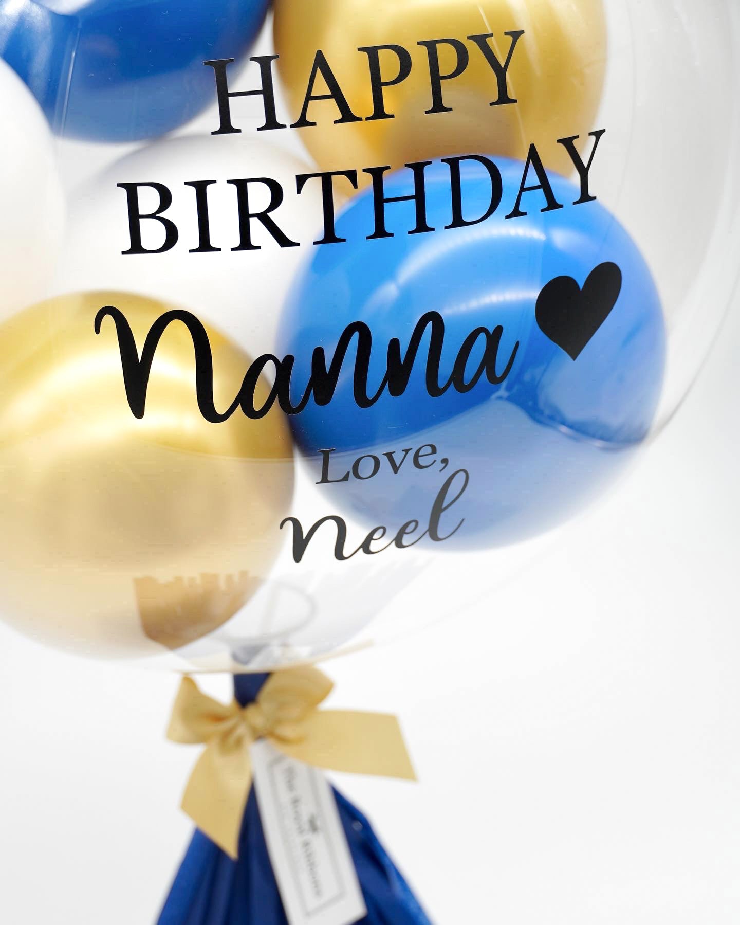 The Royal Balloon Classic features a large sized air-filled clear latex balloon with 6 mini balloons in it. With a heartwarming personalized message on the balloon, the Royal Balloon Classic makes the perfect gift or decor for occasions such as birthday, anniversary, baby shower, wedding, housewarming, and graduation.