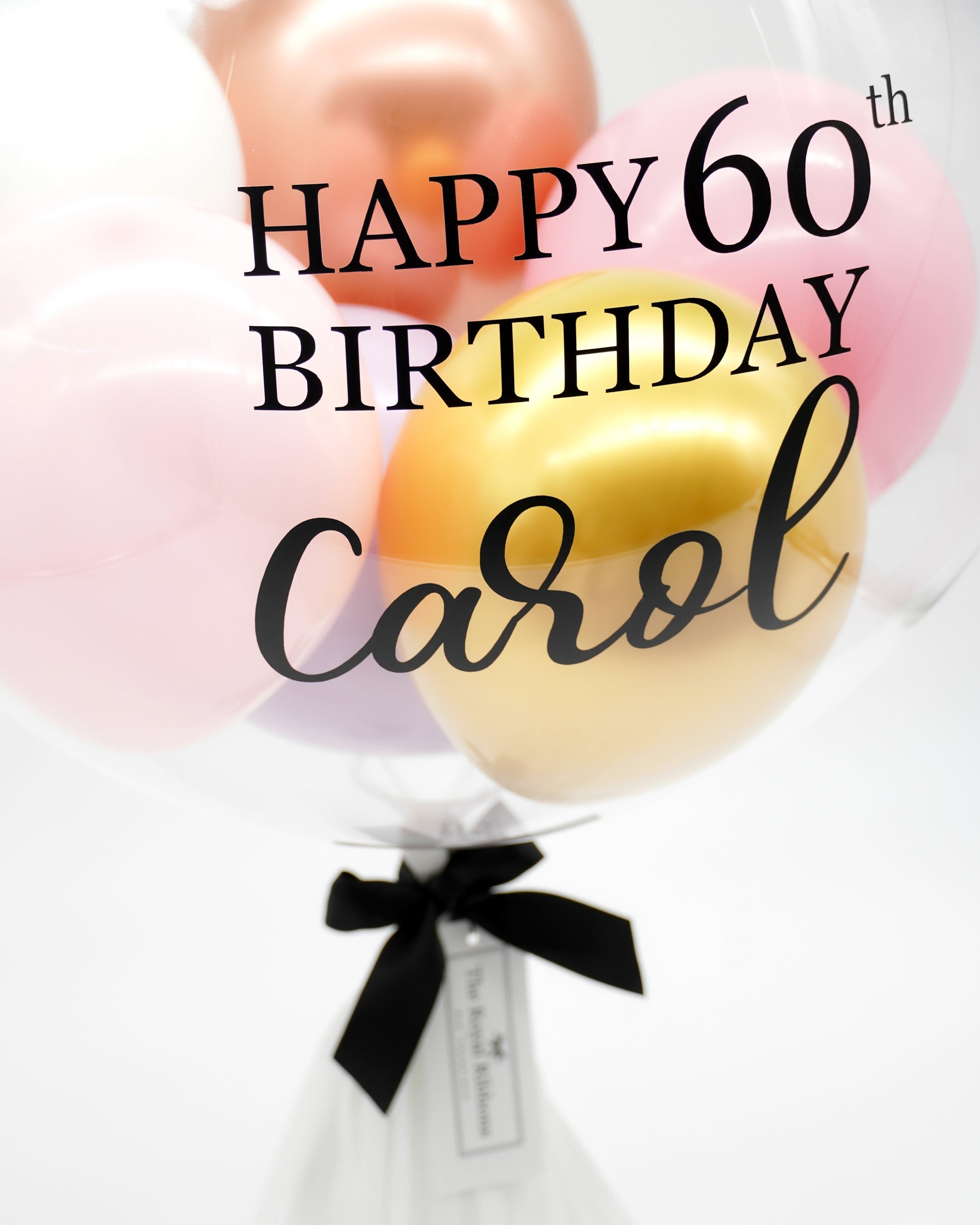 The Royal Balloon Classic features a large sized air-filled clear latex balloon with 6 mini balloons in it. With a heartwarming personalized message on the balloon, the Royal Balloon Classic makes the perfect gift or decor for occasions such as birthday, anniversary, baby shower, wedding, housewarming, and graduation.
