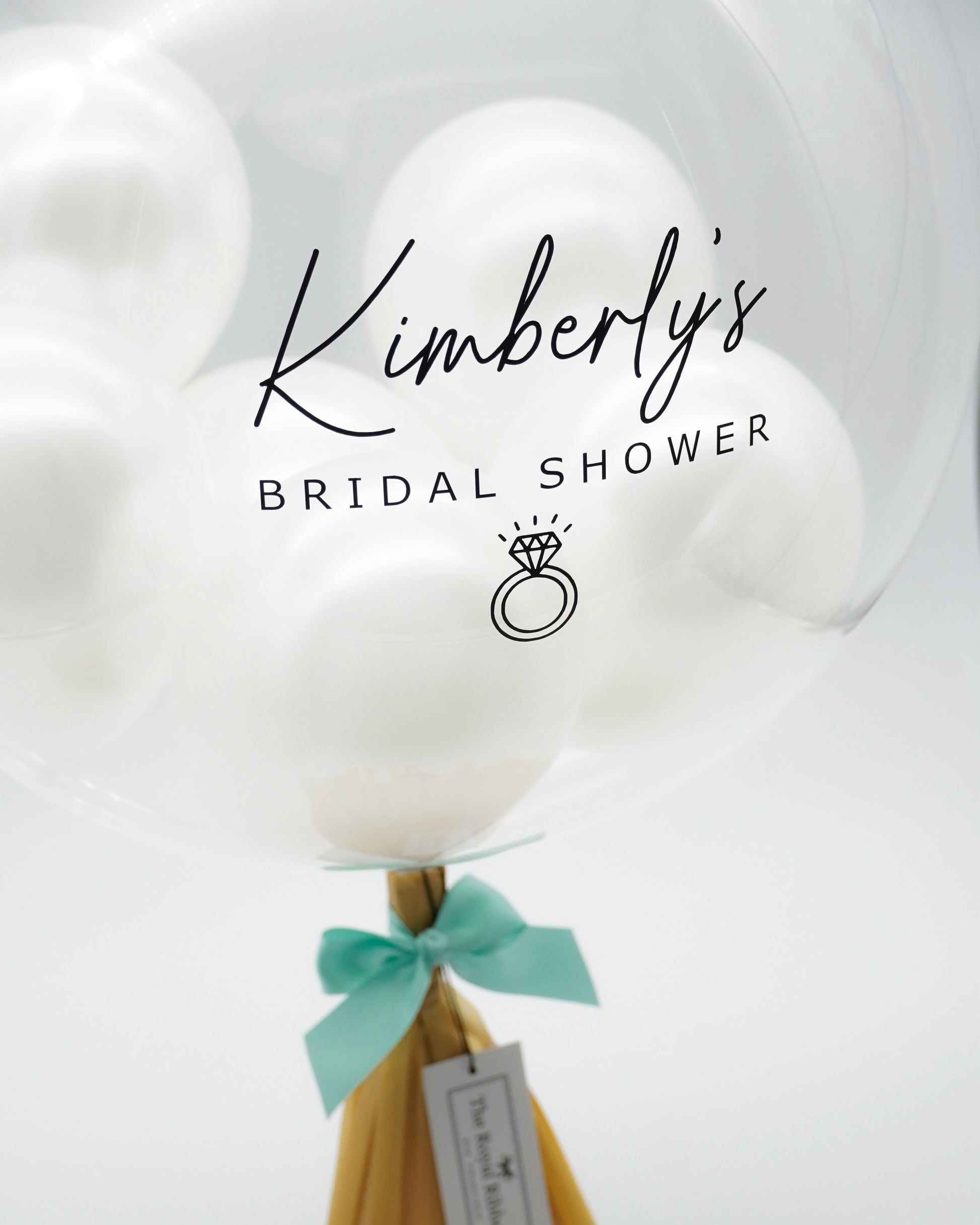 1 large sized clear latex balloon, 6 mini balloons, premium ribbon, paper tassel, plastic balloon stand with 3M double sided tape, your personalized message on the balloon & complimentary card (optional).