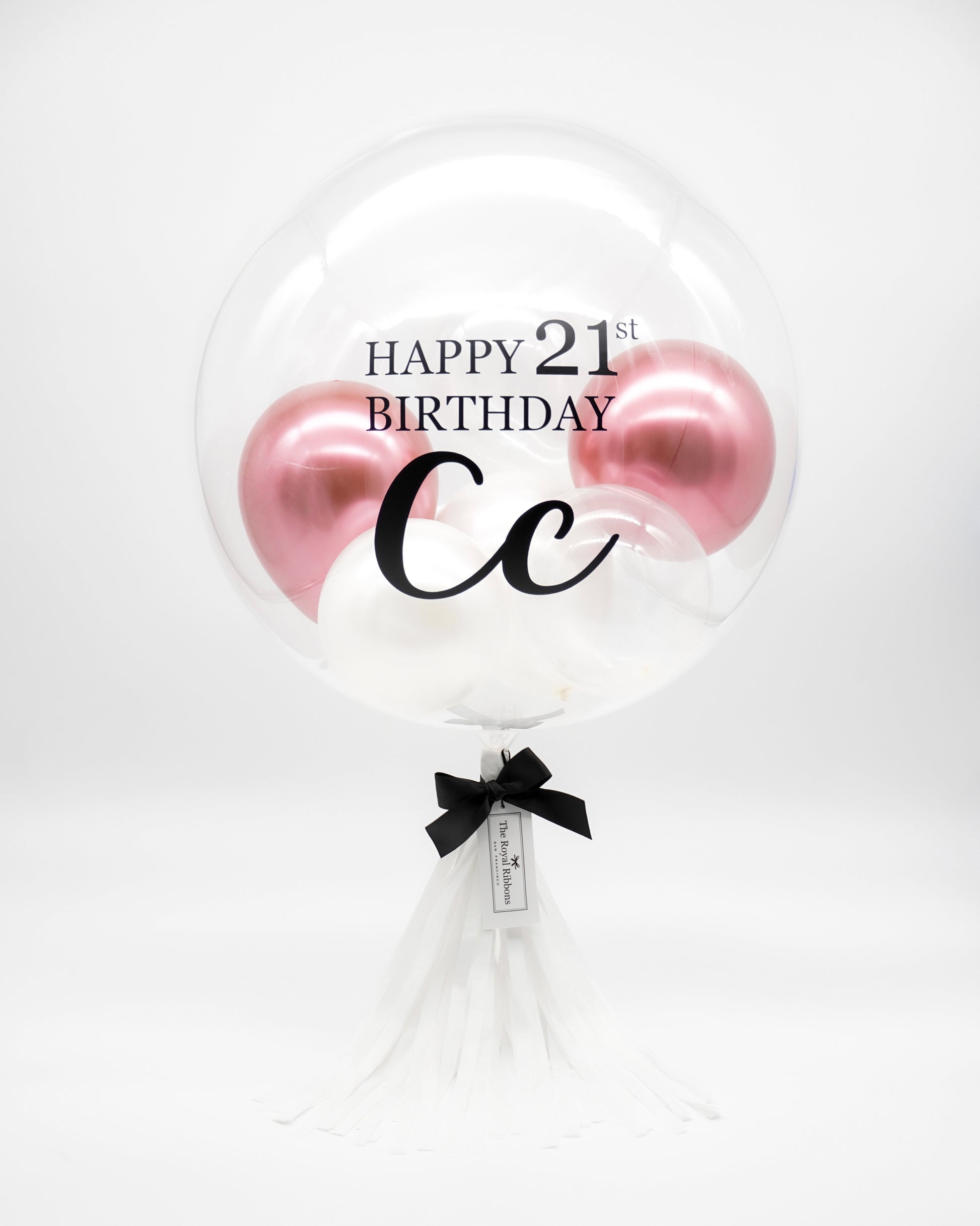 The Royal Balloon Classic features a large sized air-filled clear latex balloon with 6 mini balloons in it. With a heartwarming personalized message on the balloon, the Royal Balloon Classic makes the perfect gift or decor for occasions such as birthday, anniversary, baby shower, wedding, housewarming, and graduation.
