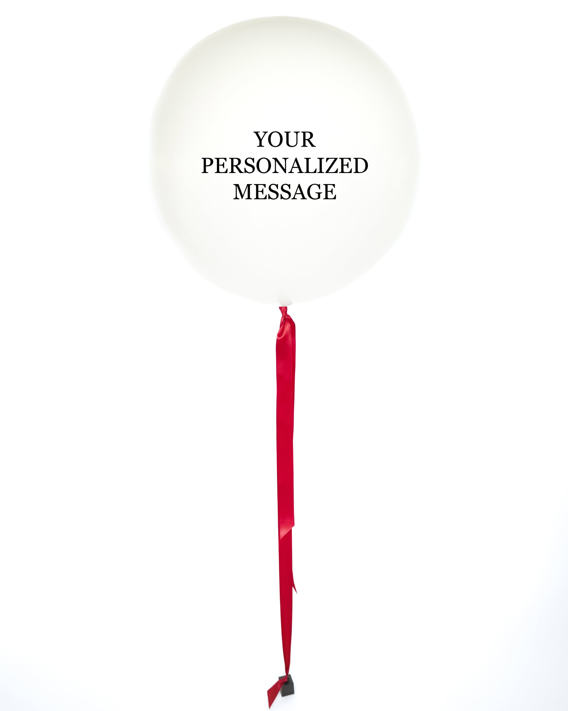 The Royal Balloon Jumbo features an extra large sized helium-filled color latex balloon attached to premium ribbon and balloon weight. With a heartwarming personalized message on the balloon, the Royal Balloon Jumbo makes the perfect gift or decor for occasions such as birthday, anniversary, baby shower, wedding, housewarming, and graduation.