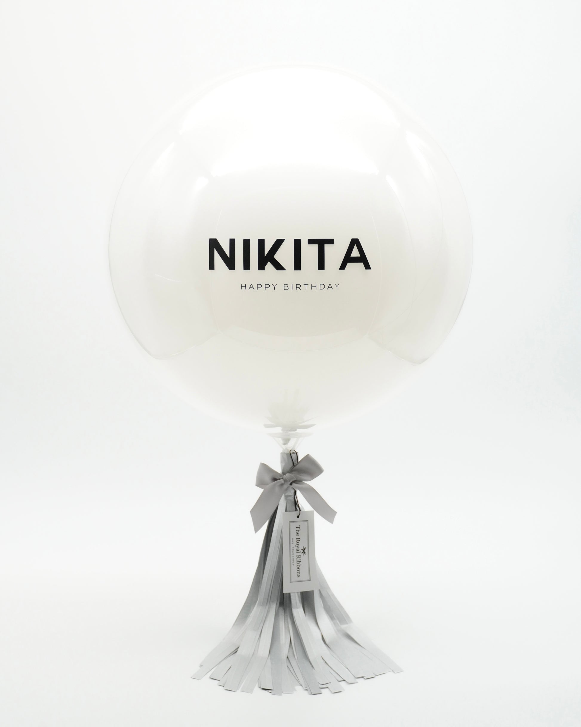 The Royal Balloon Modern features a large sized air-filled clear latex balloon with a single color inner layer. With a heartwarming personalized message on the balloon, the Royal Balloon Modern makes the perfect gift or decor for occasions such as birthday, anniversary, baby shower, wedding, housewarming, and graduation.Â