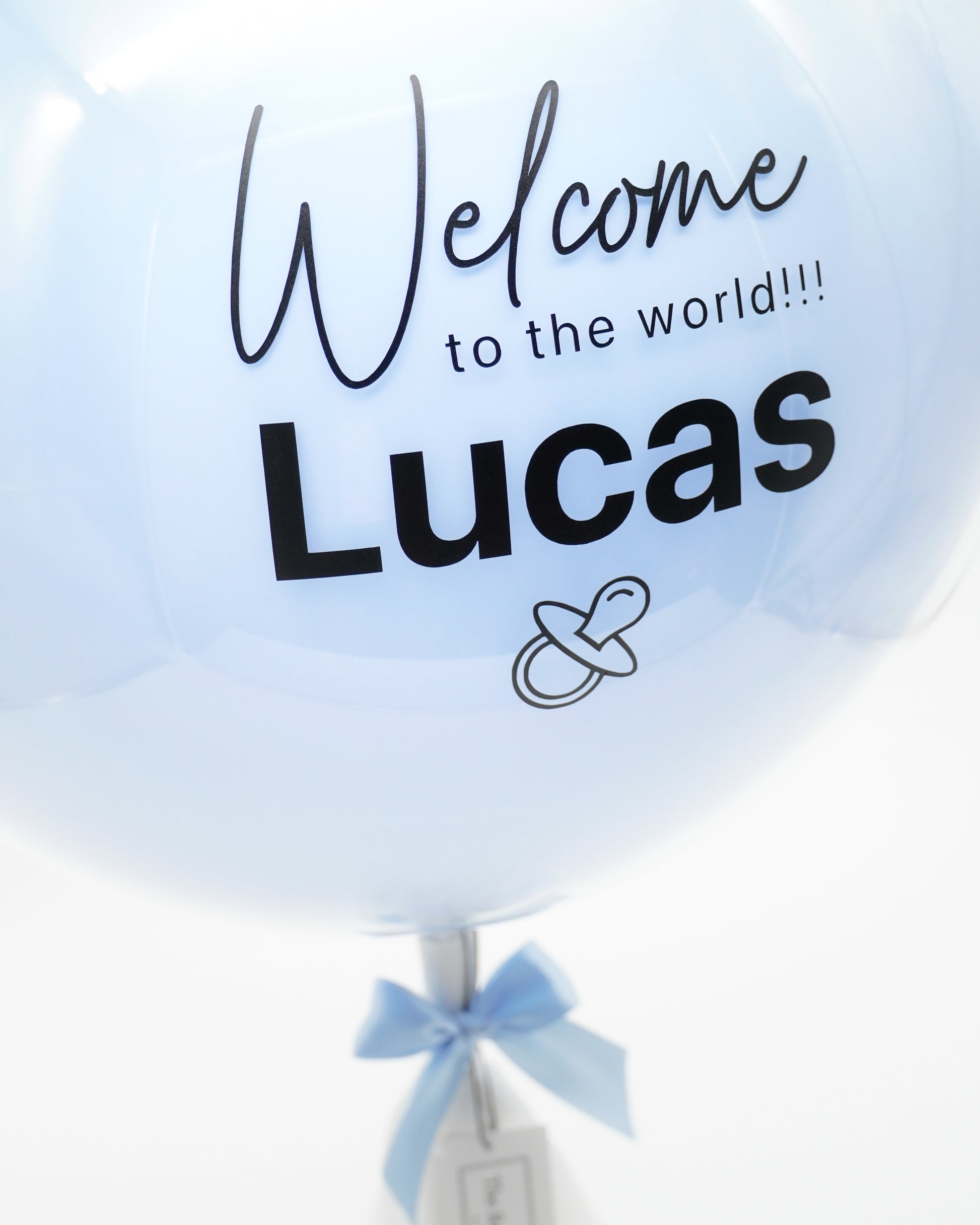 1 large sized clear latex balloon with a single color inner layer, premium ribbon, paper tassel, plastic balloon stand with 3M double sided tape, your personalized message on the balloon & complimentary card (optional).