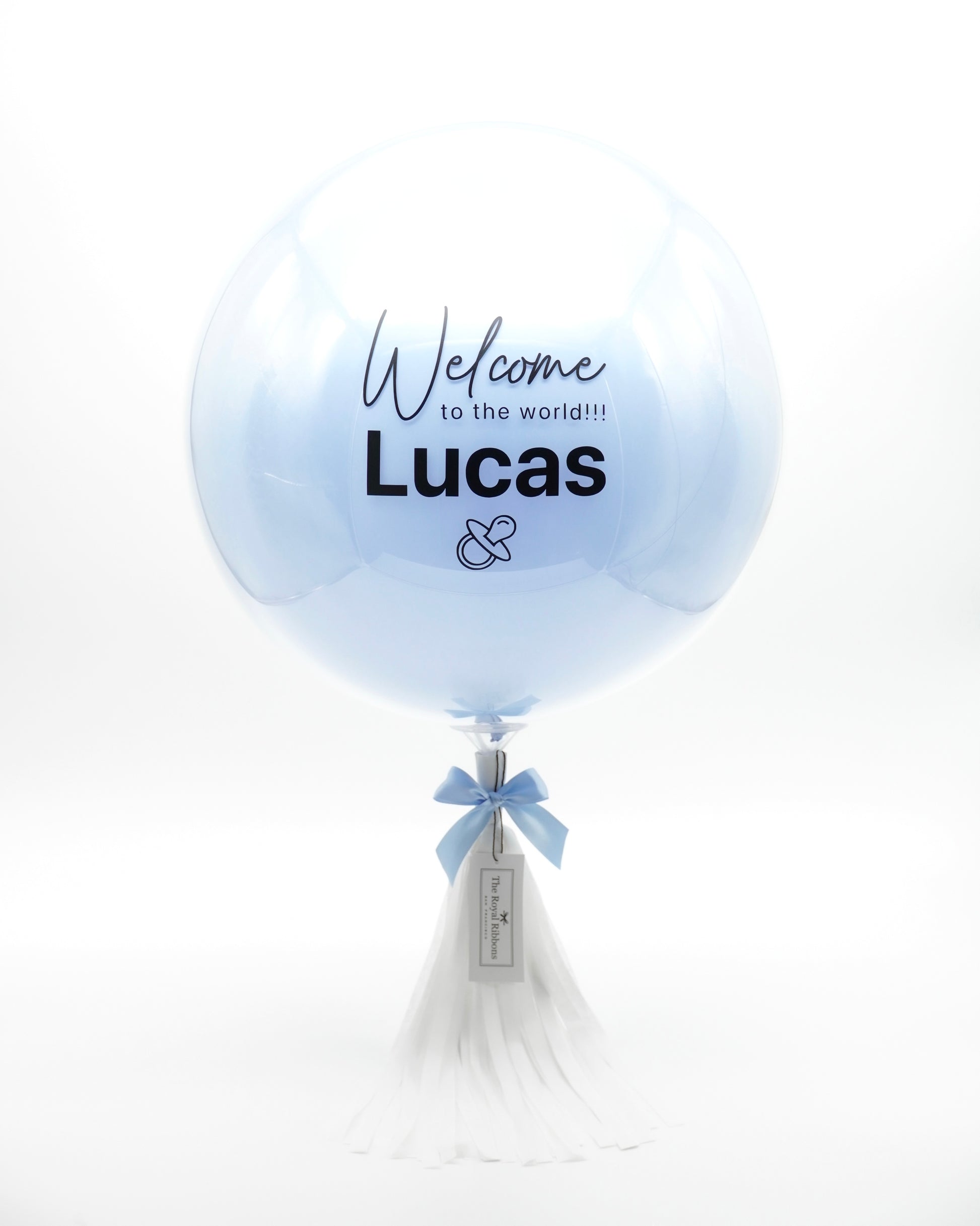 The Royal Balloon Modern features a large sized air-filled clear latex balloon with a single color inner layer. With a heartwarming personalized message on the balloon, the Royal Balloon Modern makes the perfect gift or decor for occasions such as birthday, anniversary, baby shower, wedding, housewarming, and graduation.Â
