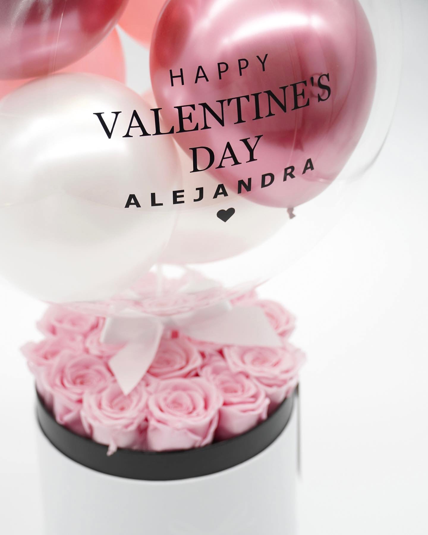 The Royal Box Classic features a medium sized Royal Balloon sitting above 16 scented preserved roses in the Modern Design round box. The beautifully preserved roses exude an irresistible scent, and can last up to a year without water and sunlight. With a heartwarming personalized message on the balloon, the Royal Box Classic makes the perfect gift or decor for occasions such as birthday, anniversary, baby shower, wedding, housewarming, and graduation.Â
