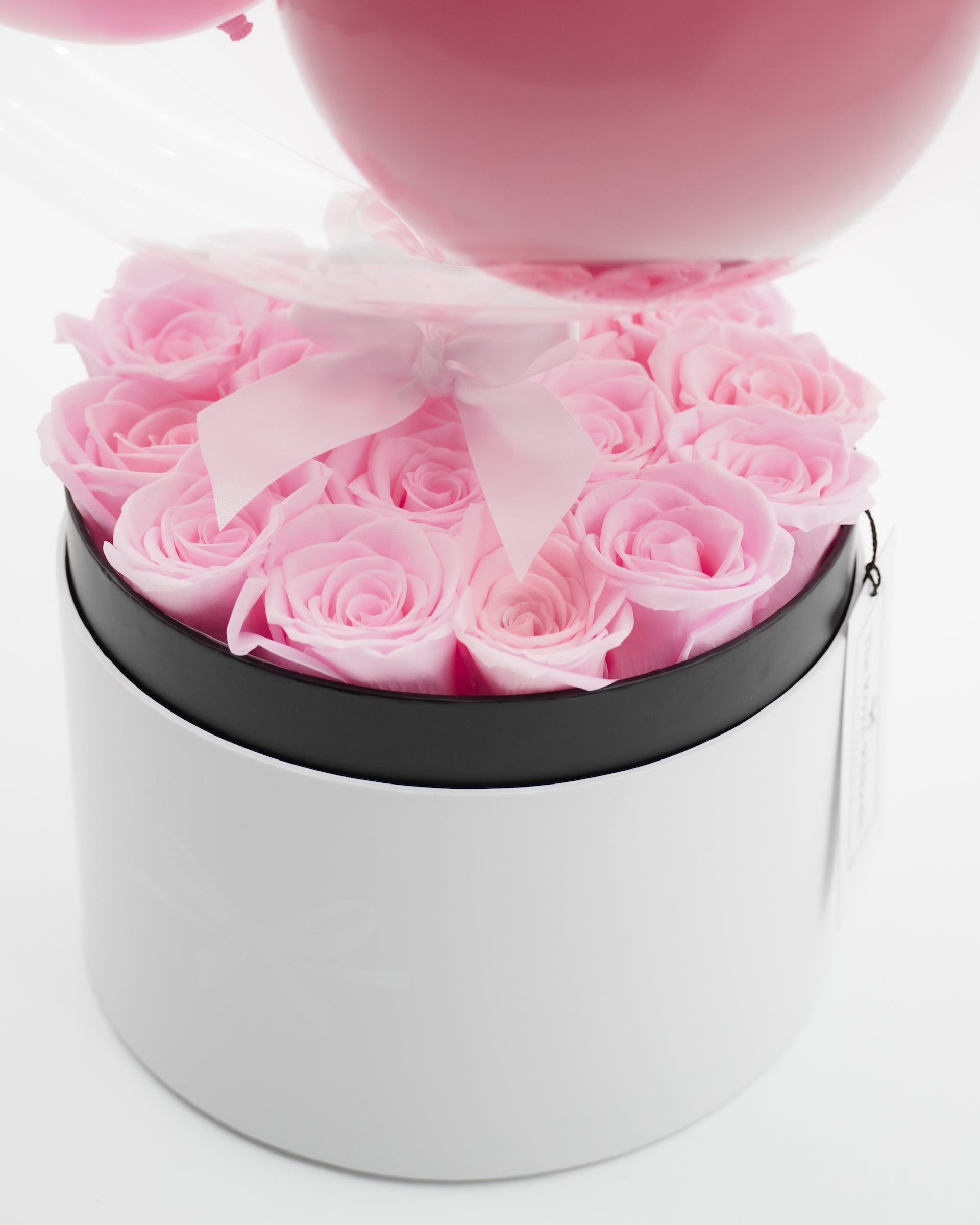 The Royal Box Classic features a medium sized Royal Balloon sitting above 16 scented preserved roses in the Modern Design round box. The beautifully preserved roses exude an irresistible scent, and can last up to a year without water and sunlight. With a heartwarming personalized message on the balloon, the Royal Box Classic makes the perfect gift or decor for occasions such as birthday, anniversary, baby shower, wedding, housewarming, and graduation.Â