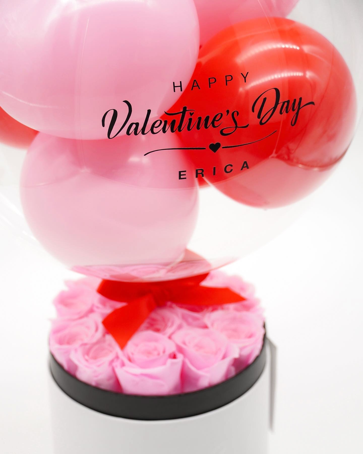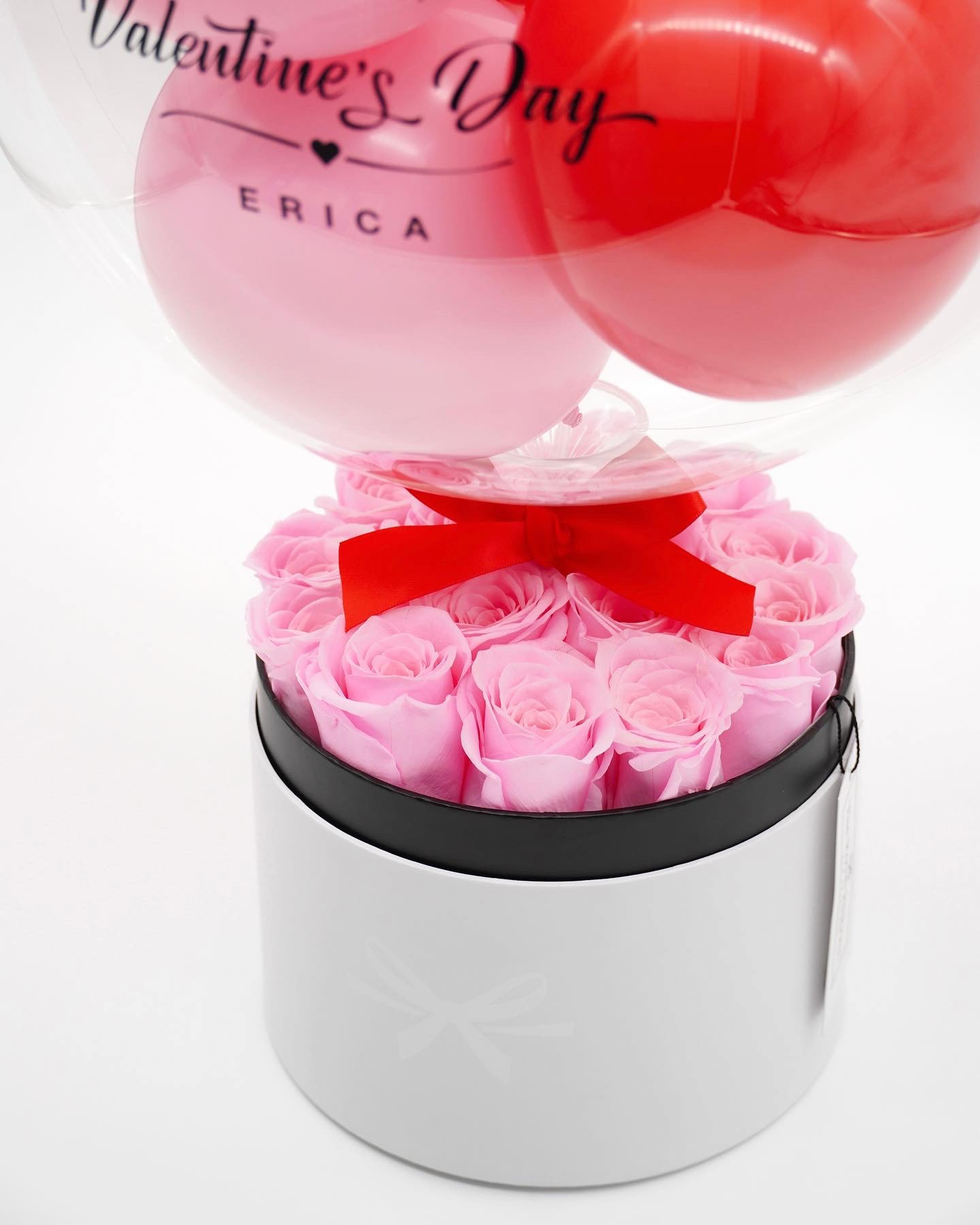 The Royal Box Classic features a medium sized Royal Balloon sitting above 16 scented preserved roses in the Modern Design round box. The beautifully preserved roses exude an irresistible scent, and can last up to a year without water and sunlight. With a heartwarming personalized message on the balloon, the Royal Box Classic makes the perfect gift or decor for occasions such as birthday, anniversary, baby shower, wedding, housewarming, and graduation.Â