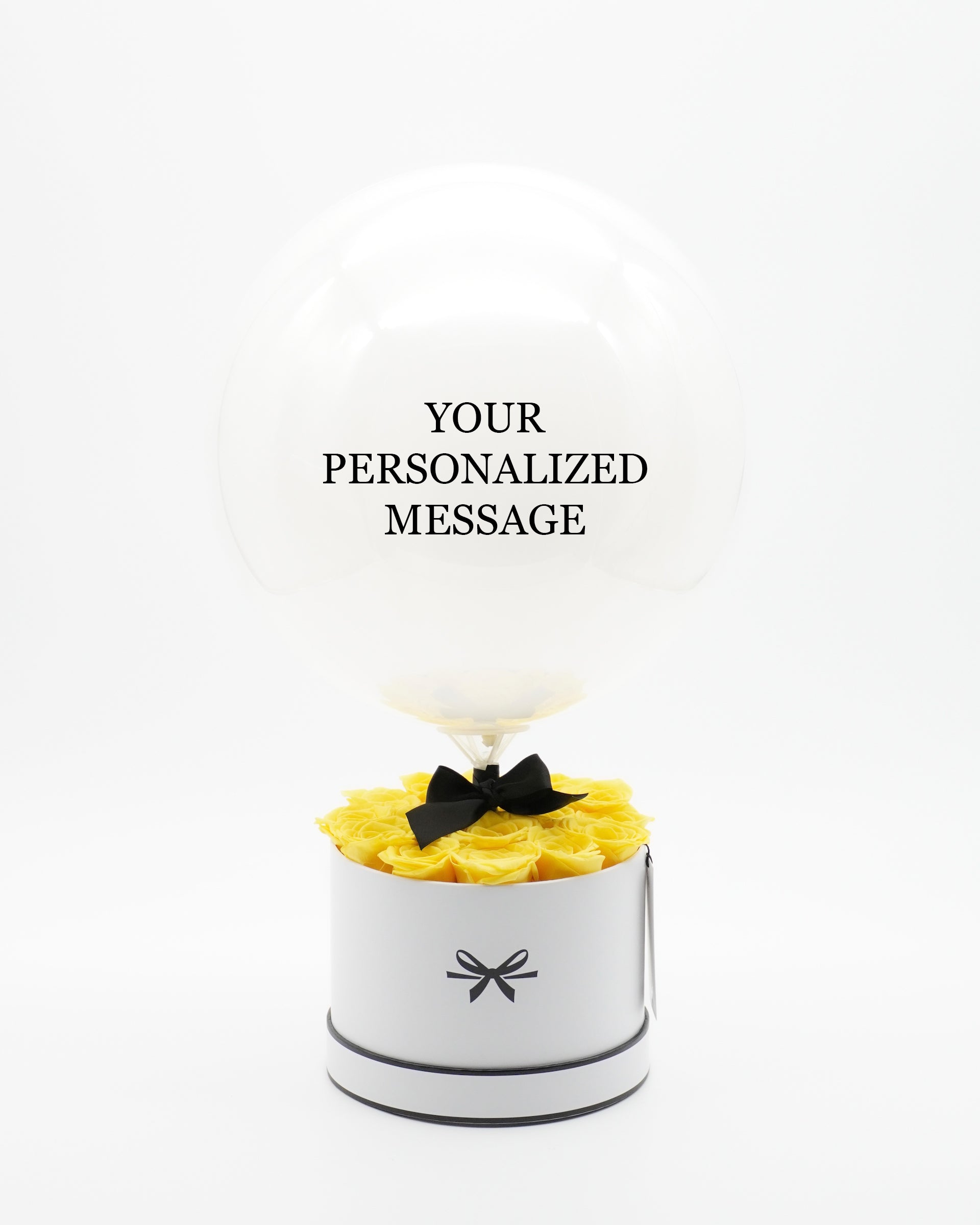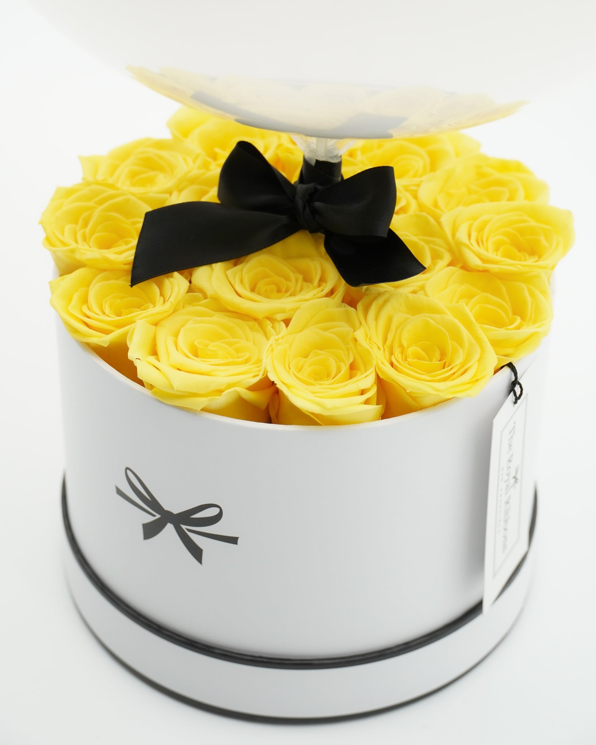 The Royal Box Modern features a medium sized Royal Balloon sitting above 16 scented preserved roses in theĀ Classic Design round box. The beautifully preserved roses exude an irresistible scent, and can last up to a year without water and sunlight. With a heartwarming personalizedĀ message on the balloon, the Royal Box Modern makes the perfect gift or decor for occasions such asĀ birthday, anniversary, baby shower, wedding, housewarming, and graduation.Ā